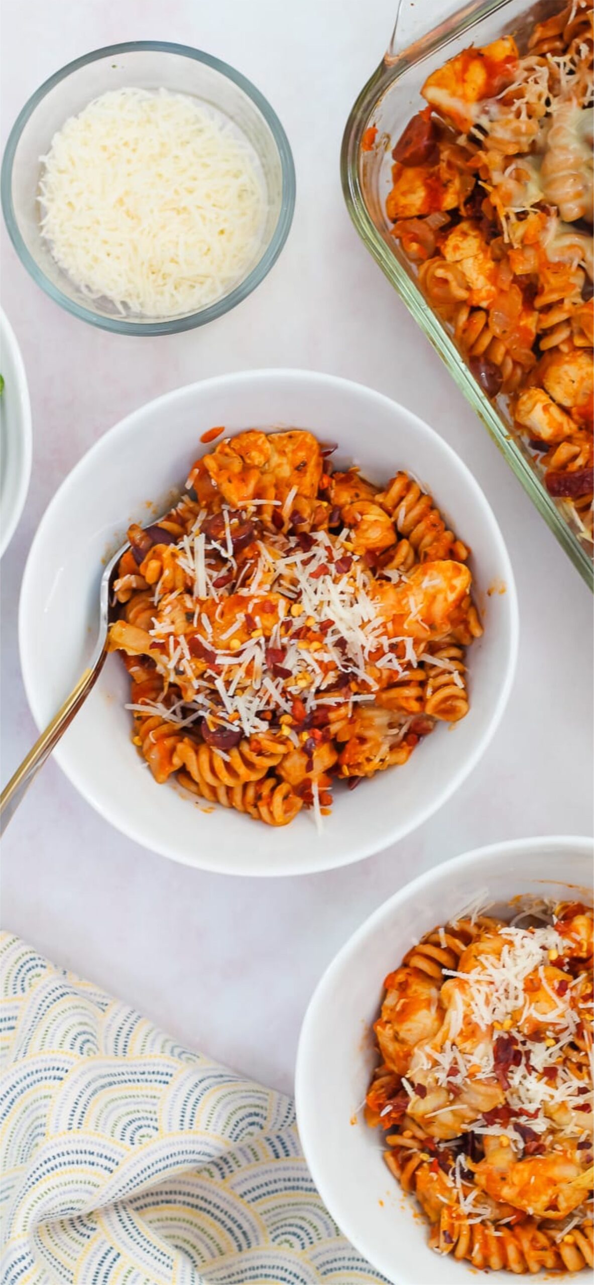 It’s time to dig in! Enjoy your creamy, savory chicken pasta that’s sure to be a hit for dinner. Quick, easy, and so satisfying!