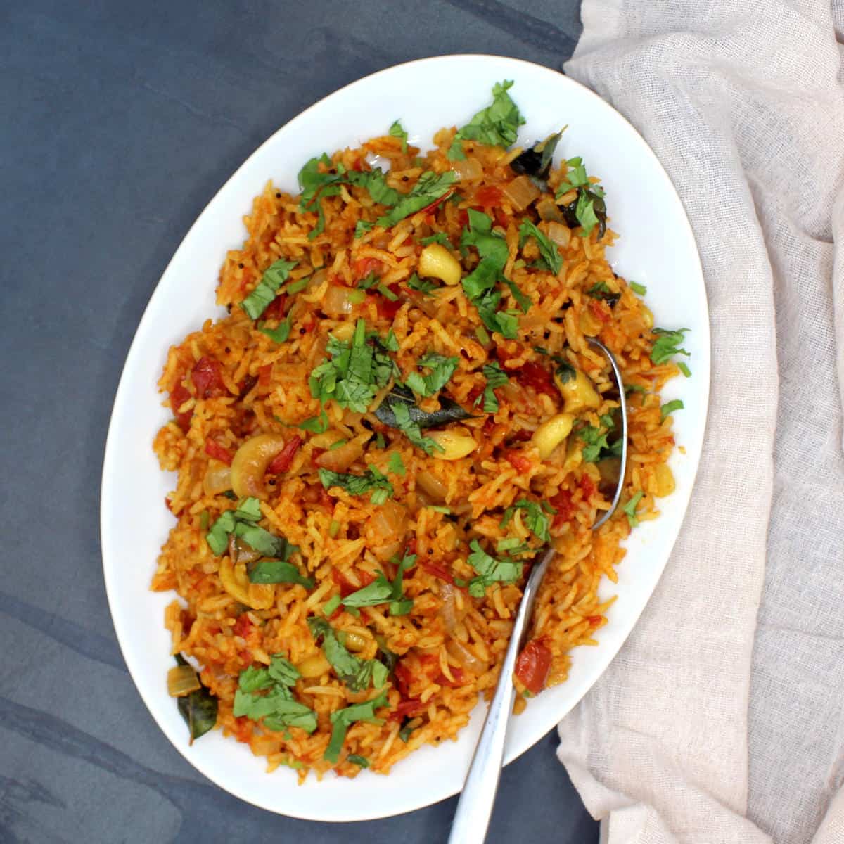 Learn to make flavorful South Indian style Tomato Rice  a perfect one pot meal ready in minutes