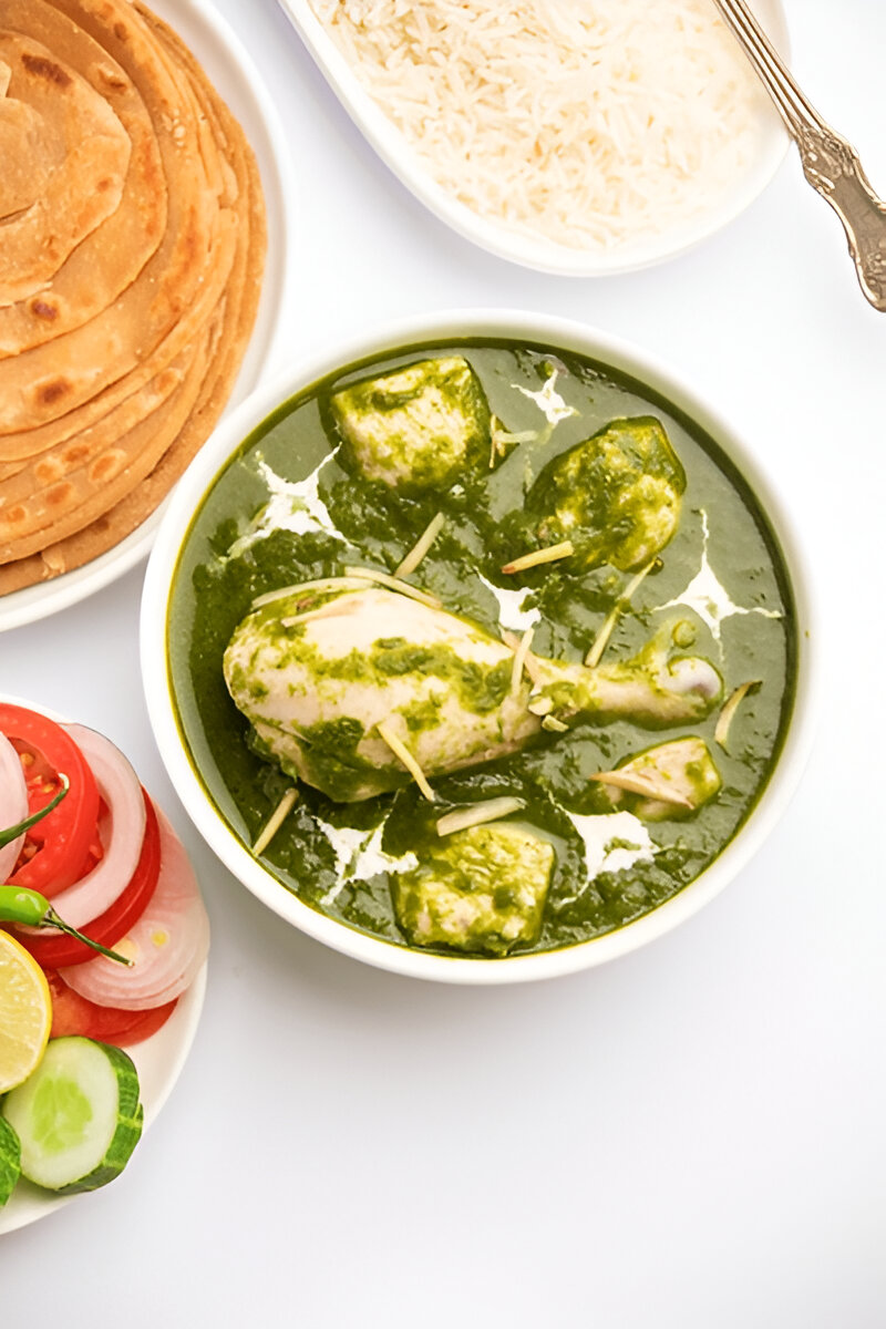Experience the goodness of tender chicken cooked in a vibrant spinach (palak) gravy. A healthy, flavorful dish that is sure to tantalize your taste buds!