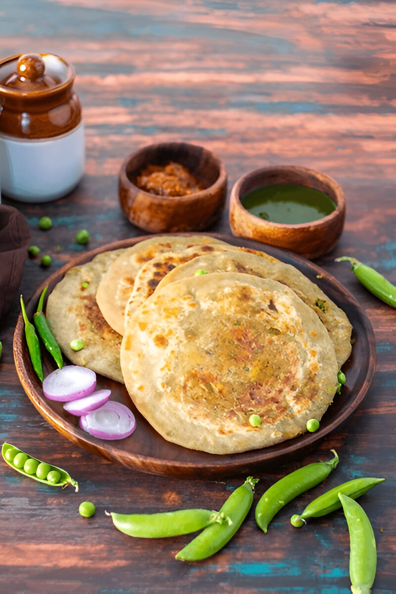 Serve your hot Matar Paratha with a dollop of curd, pickle, or a refreshing mint chutney for an irresistible meal.